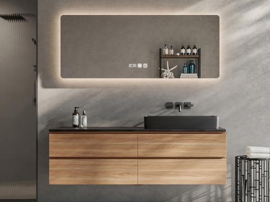 هذا طاولة حمام خشبية يمزج ببراعة بين سحر الطبيعة الدافئ والرقي العصري. يتميز بأربعة أدراج واسعة لتخزين واسع، ولمسة نهائية خشبية رائعة، وسطح عمل أسود جريء مع حوض متناسق. تُضفي المرآة الذكية المدمجة لمسة نهائية من التكنولوجيا المتطورة، مما يخلق مساحة حمام عملية للغاية وراقية من الناحية الجمالية.